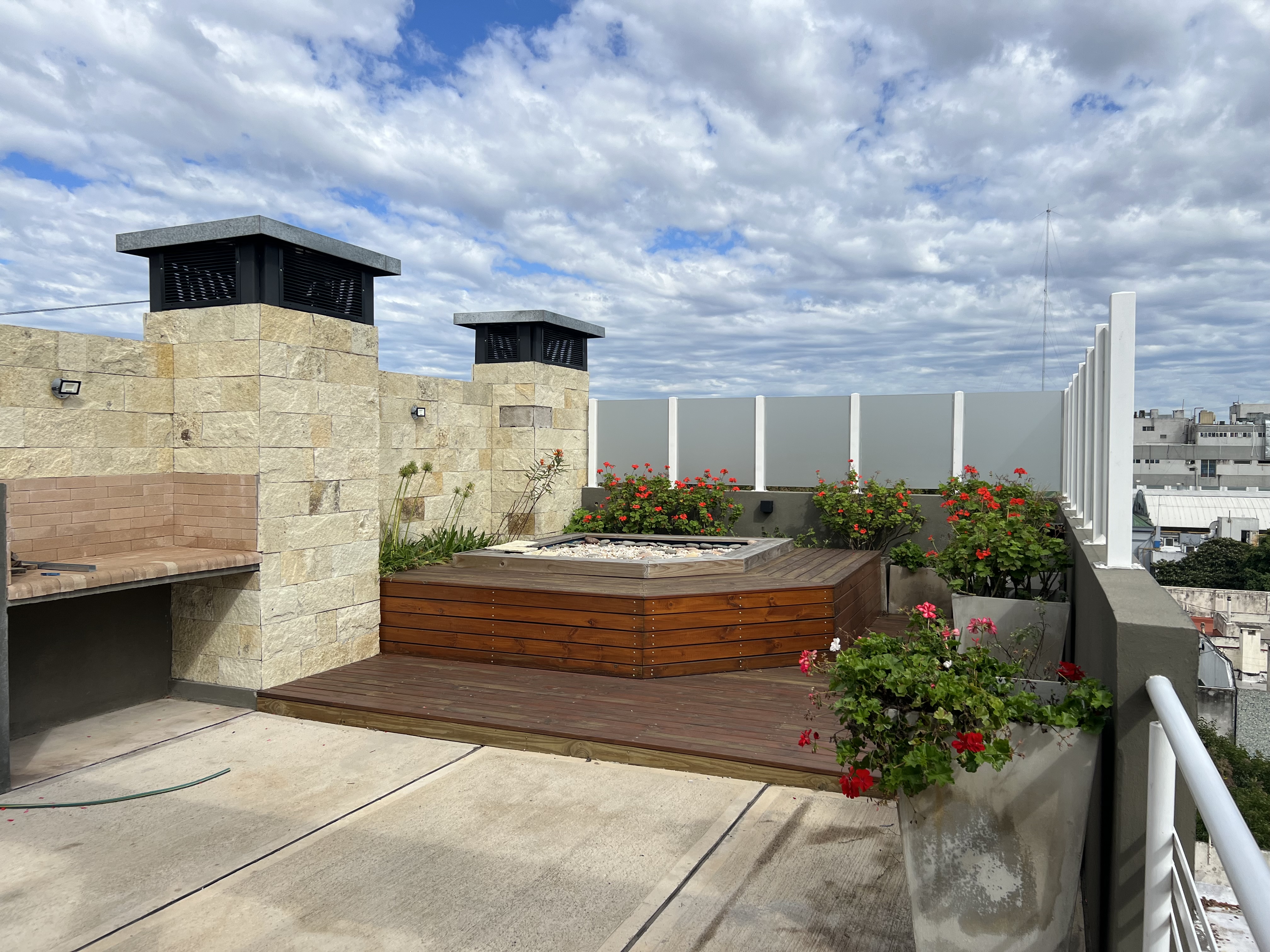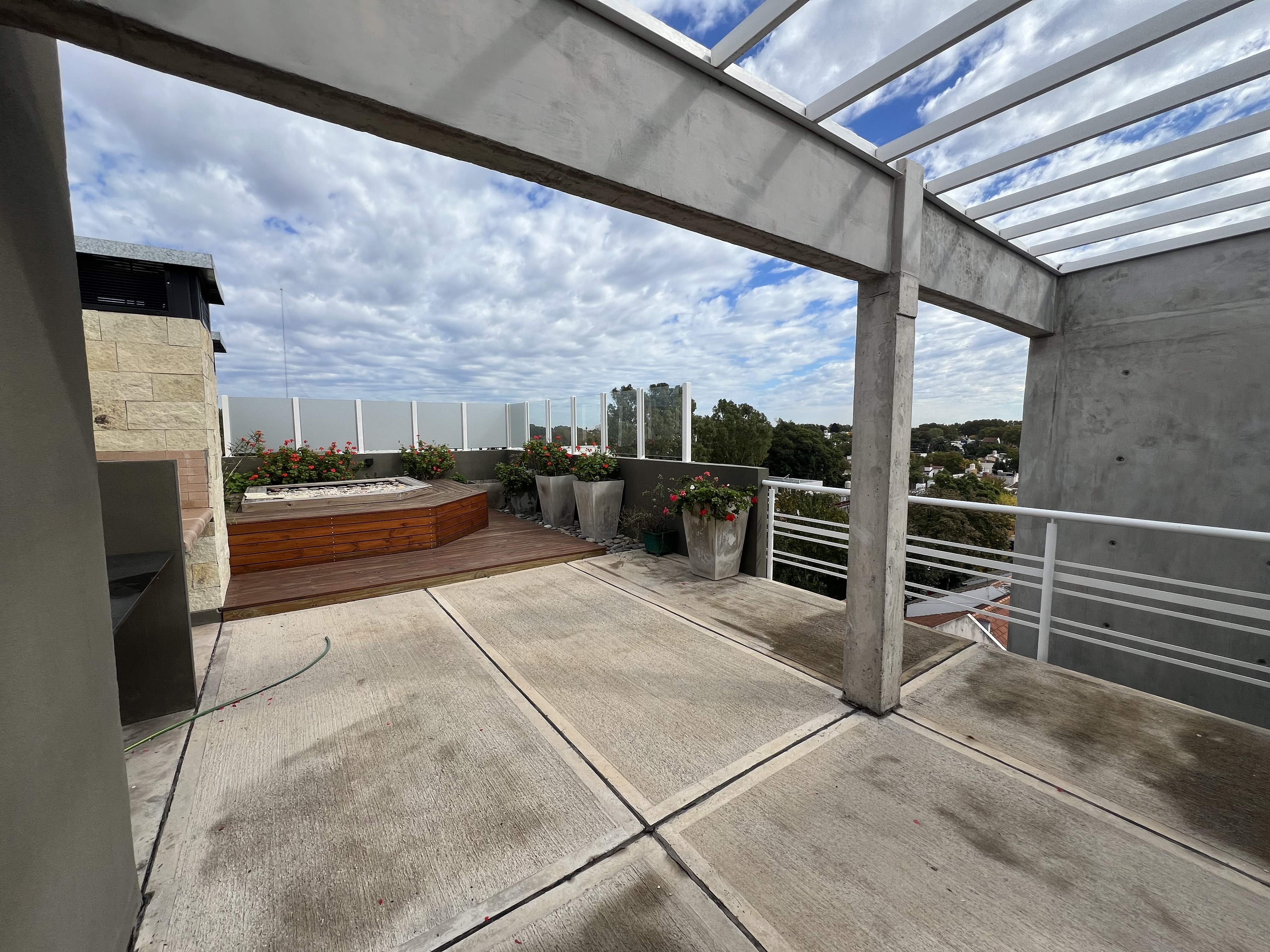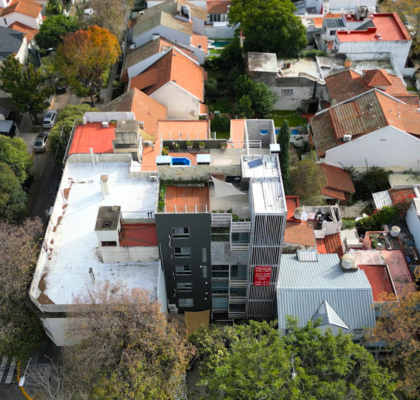 En la planta baja se encuentran las 7 cocheras. En el primer y segundo nivel, hay 4 semipisos de 2 ambientes. En el tercer nivel, los semipisos tienen la tipología de loft con entrepisos en doble altura. El quinto nivel está destinado a un magnífico penthouse con una hermosa terraza totalmente equipada, parrilla, quincho cubierto, solarium y una pequeña pileta. En esta unidad, una notable flexibilidad funcional permite disponer de 3 cómodos dormitorios, uno de ellos en suite.