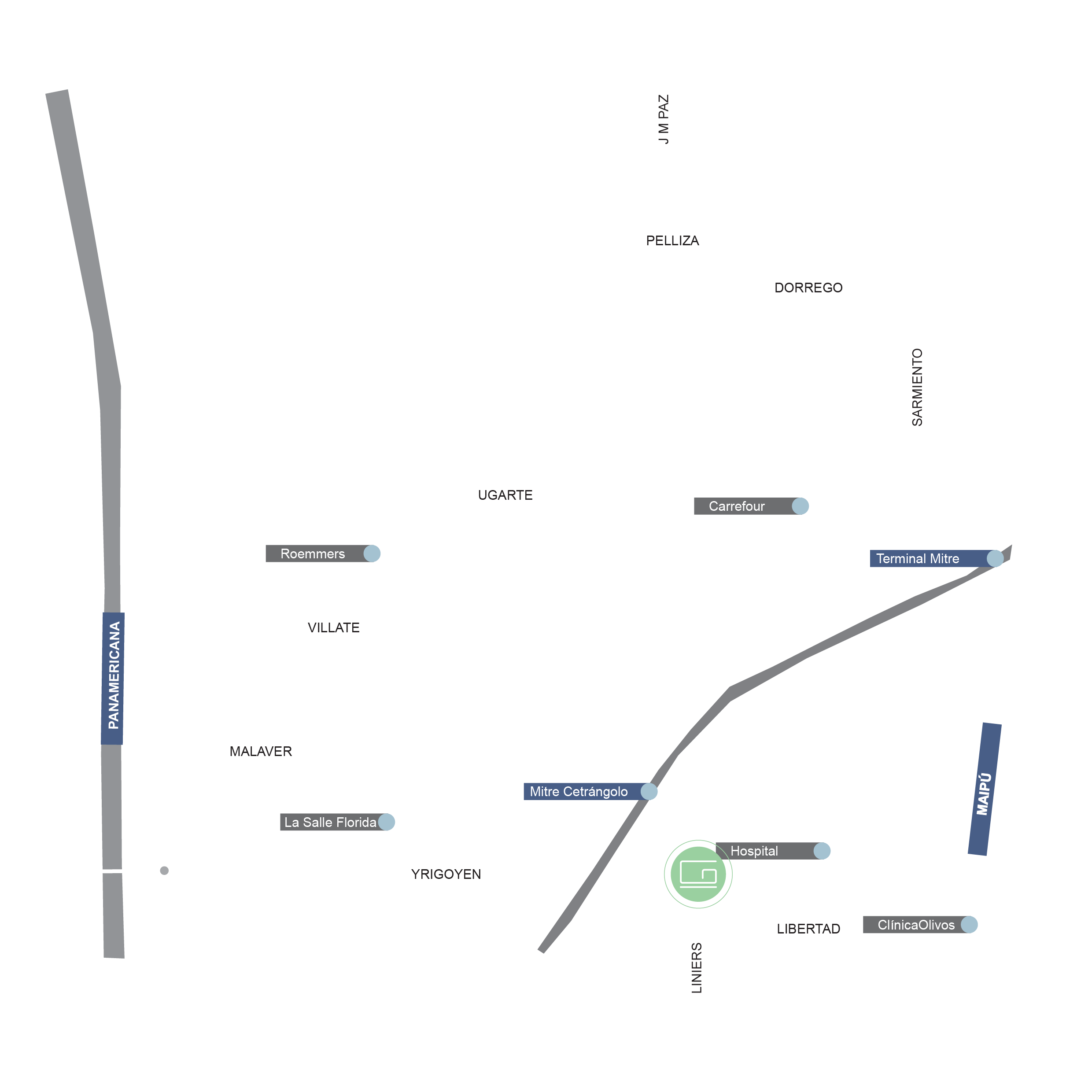 Su ubicación, a pocas cuadras de la Avenida Maipú, provee excelente conectividad y una completa red comercial. La estación Cetrángolo del ferrocarril Mitre y las avenidas Lugones-Cantilo lo vinculan al centro porteño en pocos minutos.
